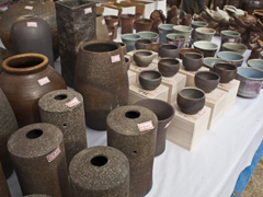 もちろん『佳実窯』も参加していますよ。睡蓮鉢などの大物陶器はもちろん、各種食器や花器、小さな置物まで様々な大谷焼製品が並びます。